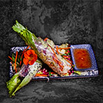Summer rolls filled with rice noodles, lettuce, cucumber, and Vietnamese herbs, served with a spicy lime dip